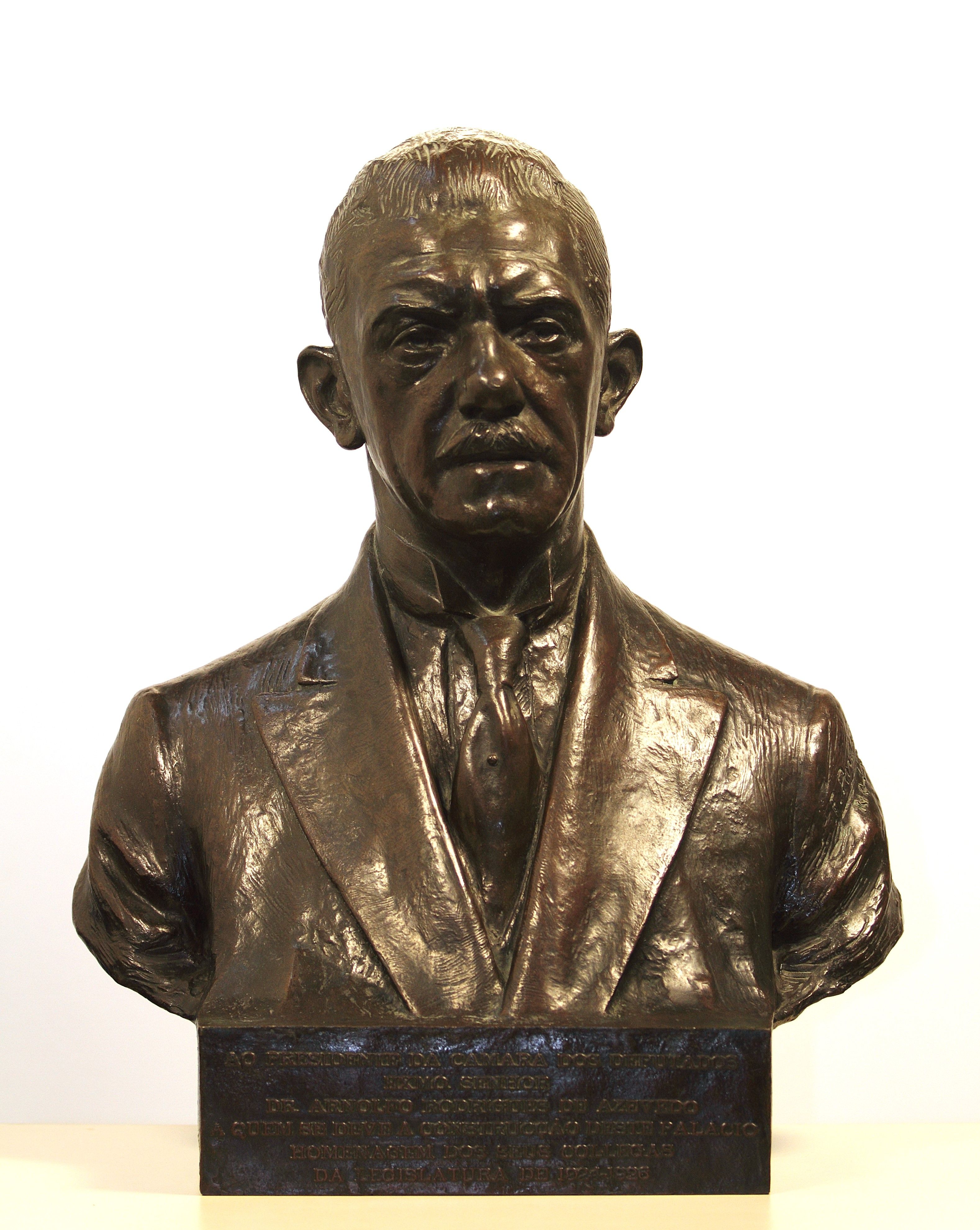 Busto em bronze de Arnolfo de Azevedo (1868-1942), presidente da Câmara de Deputados entre 1921 a 1926. Autoria desconhecida. Está localizado no corredor à esq. De quem entra, 3º andar.