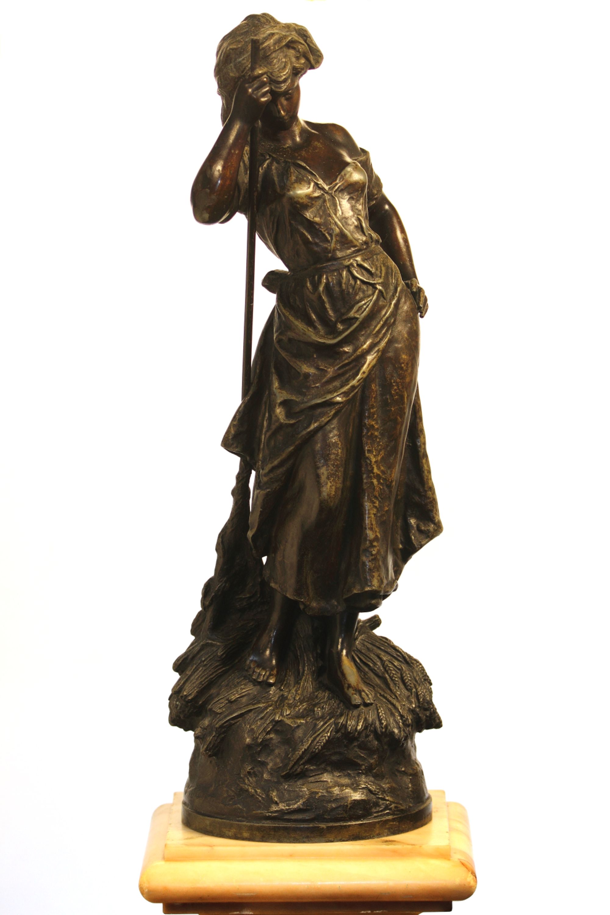 Estatueta de uma mulher em ferro fundido segurando um bastão na mão direita. Autor: Hyppolite-François Moureau. Localizada na entrada do Salão Nobre no 3º andar.