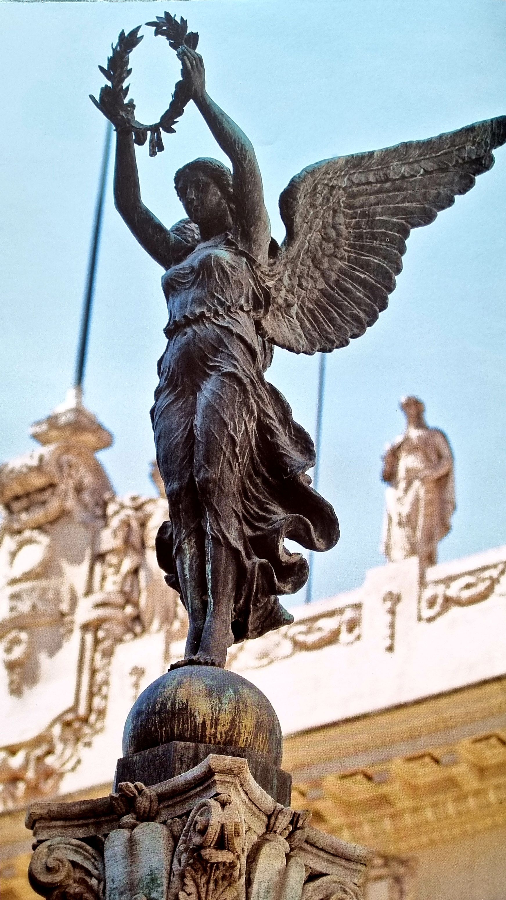 Nota: “A estátua da “Vitória”, executada pelo sr. Paulo Mazzuchelli, para o novo edifício da Câmara dos Deputados, está lançada com galhardia. As linhas da figura são graciosas e elegantes, apresentando-a cheia de leveza, com agradável vaporosidade, de vôo alçado, quase solta no espaço”. O Jornal, Rio de Janeiro, 26 ago1925.