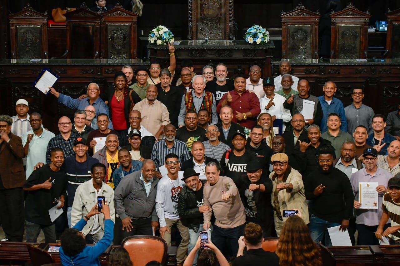 O deputado Carlos Minc (PSB) presta homenagem a 80 Dj"s de Black Music nesta quinta (09/10), no plenário Barbosa Lima Sobrinho. no Palácio Tiradentes, sede história da Alerj.