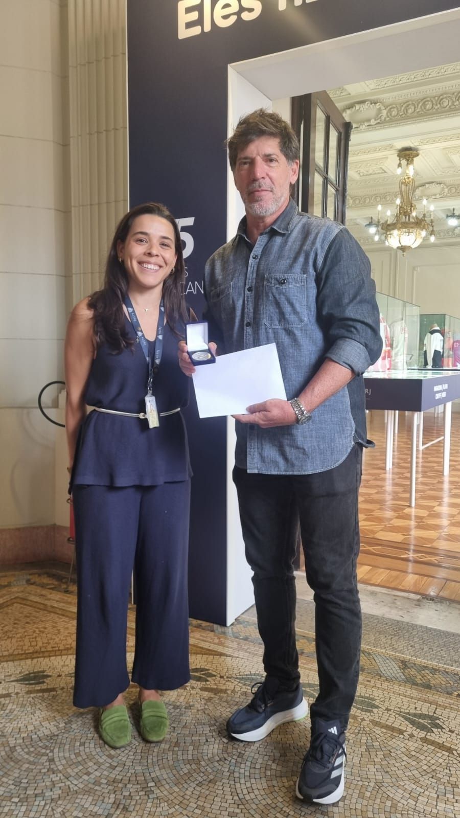Ex-jogador Wilson Gottardo visita "Exposição 75 anos do Maracanã”, no Palácio Tiradentes, sede histórica da Alerj, e recebe medalha comemorativa da representante da diretoria de Cultura, Giovanna Pampolini. Na ocasião, o ex-jogador autografou poster da equipe do Botafogo durante a primeira passagem pelo clube (1987–1990).
