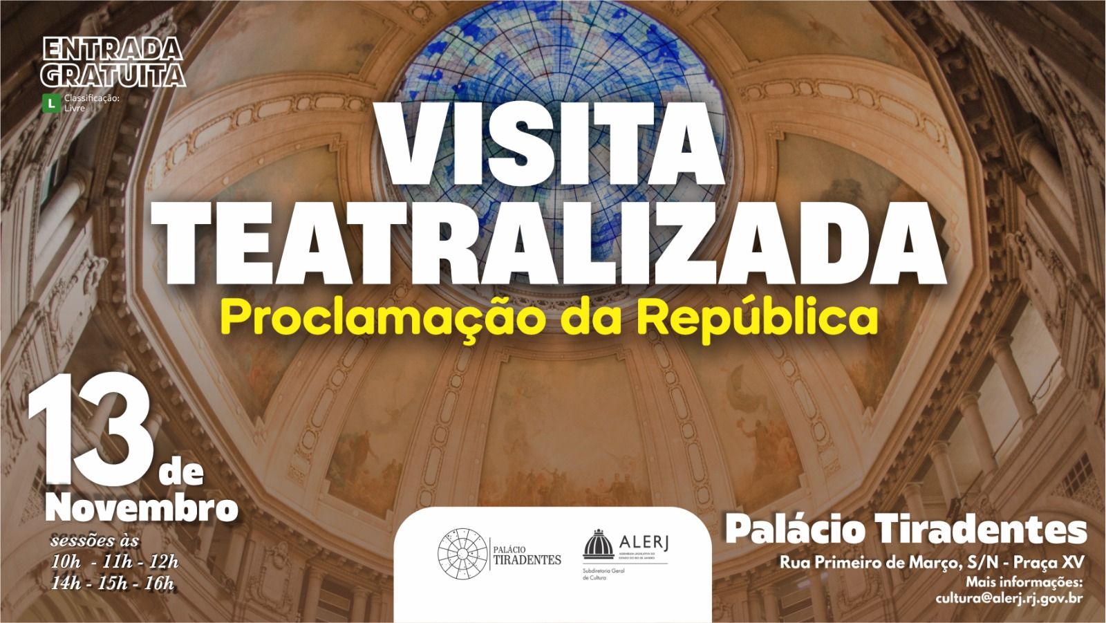 Local:Palácio Tiradentes: Rua Primeiro de Março, S/N - Praça XV. Centro.